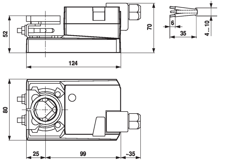 Montage direct simple sur l'arbre du clapet avec une bride universelle, sécurisé contre la surrotation avec un fusible fourni. Réglage de la position de travail à l'aide de butées mécaniques. Réglage manuel possible grâce à un bouton de retour automatique (désengagement de la transmission pendant la pression du bouton ou peut rester bloqué). Haute sécurité de fonctionnement. Le moteur est protégé contre la surcharge, ne nécessite pas de fin de course et reste automatiquement en butée.