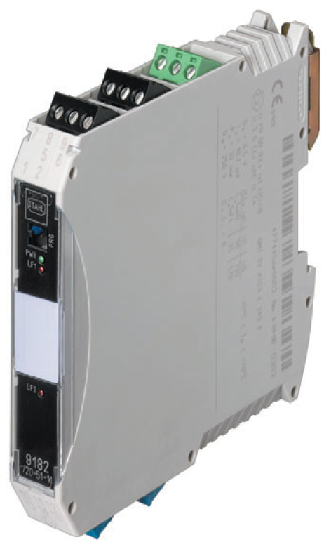 Convertisseur de température avec circuit à sécurité intrinsèque pour la connexion de capteurs de température. Convient pour les circuits dans les zones explosives ATEX zones 0, 1, 2, 20, 21, 22. Permet la connexion de la plupart des capteurs actuellement fabriqués. Livré en standard comme convertisseur pour Pt 100, mais peut être commandé pour Pt 500, Pt 1000, Ni 100 et pour la connexion de thermocouples et d'émetteurs résistifs.