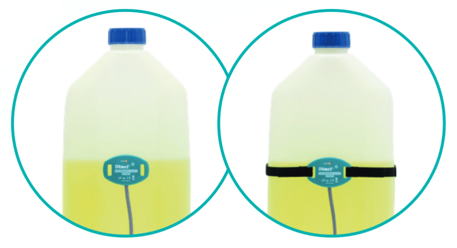 La fixation par couche adhésive convient pour les surfaces planes et les récipients d'un diamètre supérieur à 300 mm. Pour les diamètres plus petits, il est préférable d'utiliser des bandes de fixation, qui toutefois ne sont pas incluses dans l'emballage.