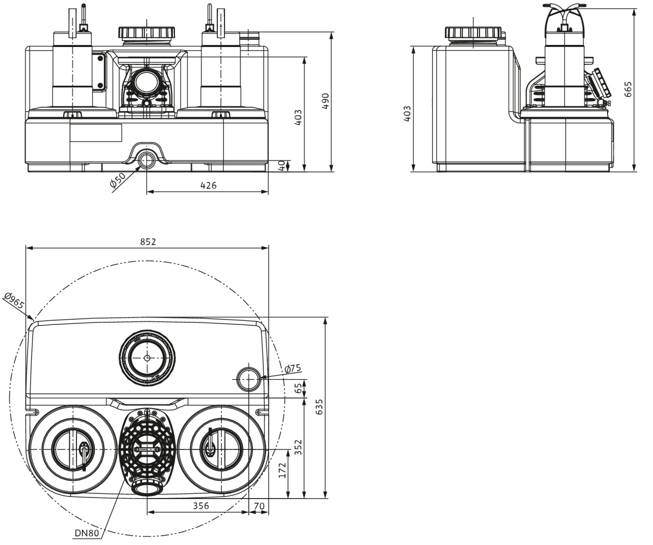 Le Drainlift SANI-L est un excellent choix pour les maisons multigénérationnelles et les installations industrielles avec une consommation incontrôlée d'eaux usées. Le moteur permet l'utilisation des modes de fonctionnement Continu et Intermittent.