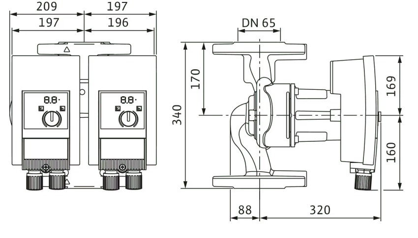 Pompe de circulation électronique double Wilo Yonos MAXO-D 65/0,5-16 PN6/10. Pour utilisation dans les systèmes de chauffage. Plus d'informations
