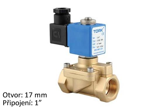 Électrovanne magnétique pour huile de chauffage TORK T-Y 405 DN 25, orifice 17 mm, 24 VDC, raccordement 1", pression 0,5-16 Bar, normalement fermée sans tension. Plus d'informations