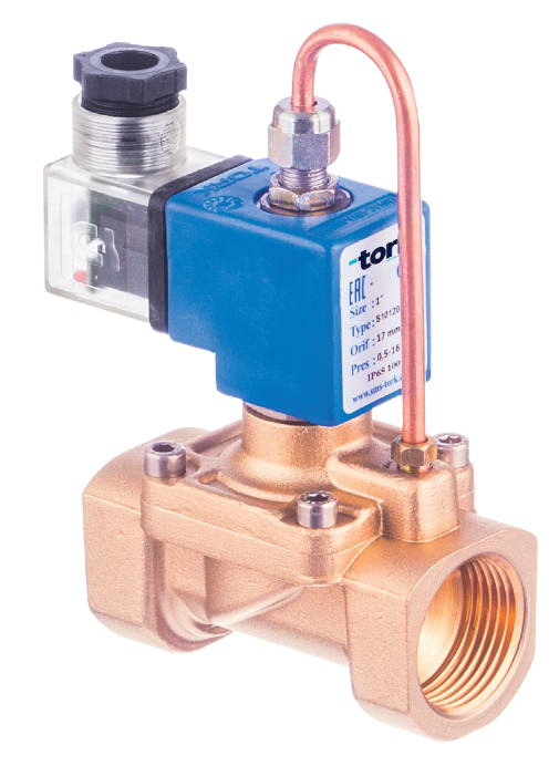 Électrovanne magnétique pour l'eau et les liquides TORK T-GHA105 DN 25, normalement ouverte sans tension, max 40 bar. Plus d'informations