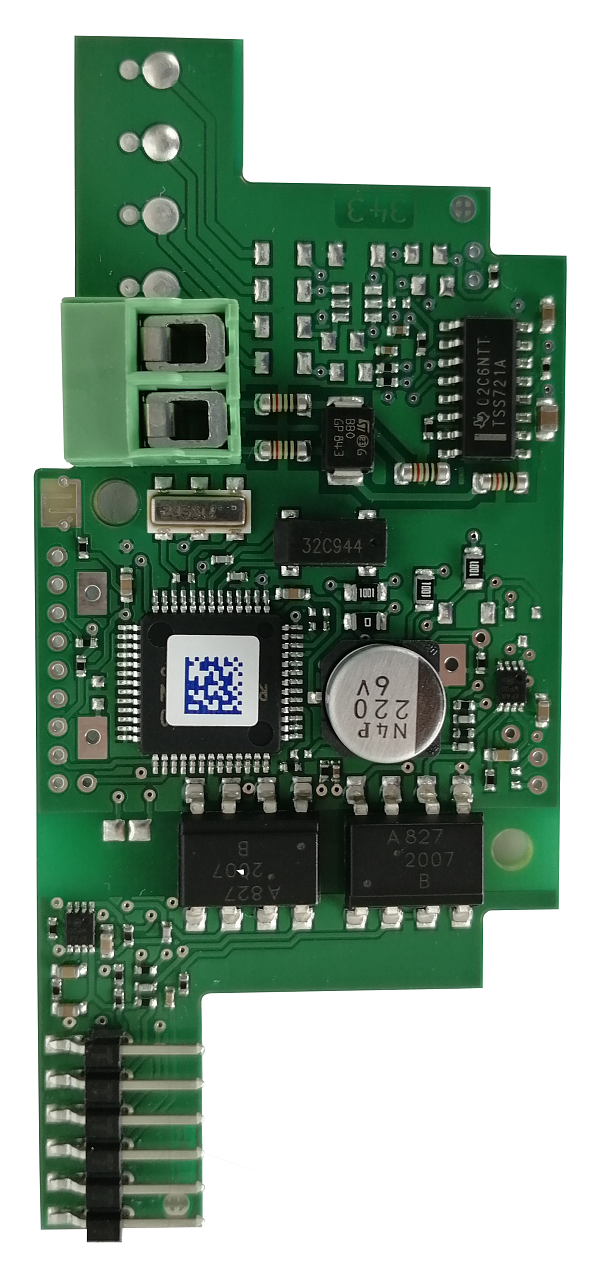 Le module M-Bus est un module complémentaire pour les compteurs de type UH50. Le module sert à la communication du compteur avec le central M-Bus et ainsi au transfert des valeurs mesurées.