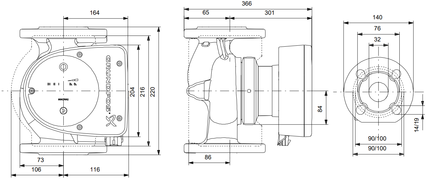 Pompe de circulation électronique en acier inoxydable Grundfos MAGNA1 32-120 F N. Adaptée pour la circulation d'eau chaude sanitaire. Exécution en acier inoxydable. Plus d'informations