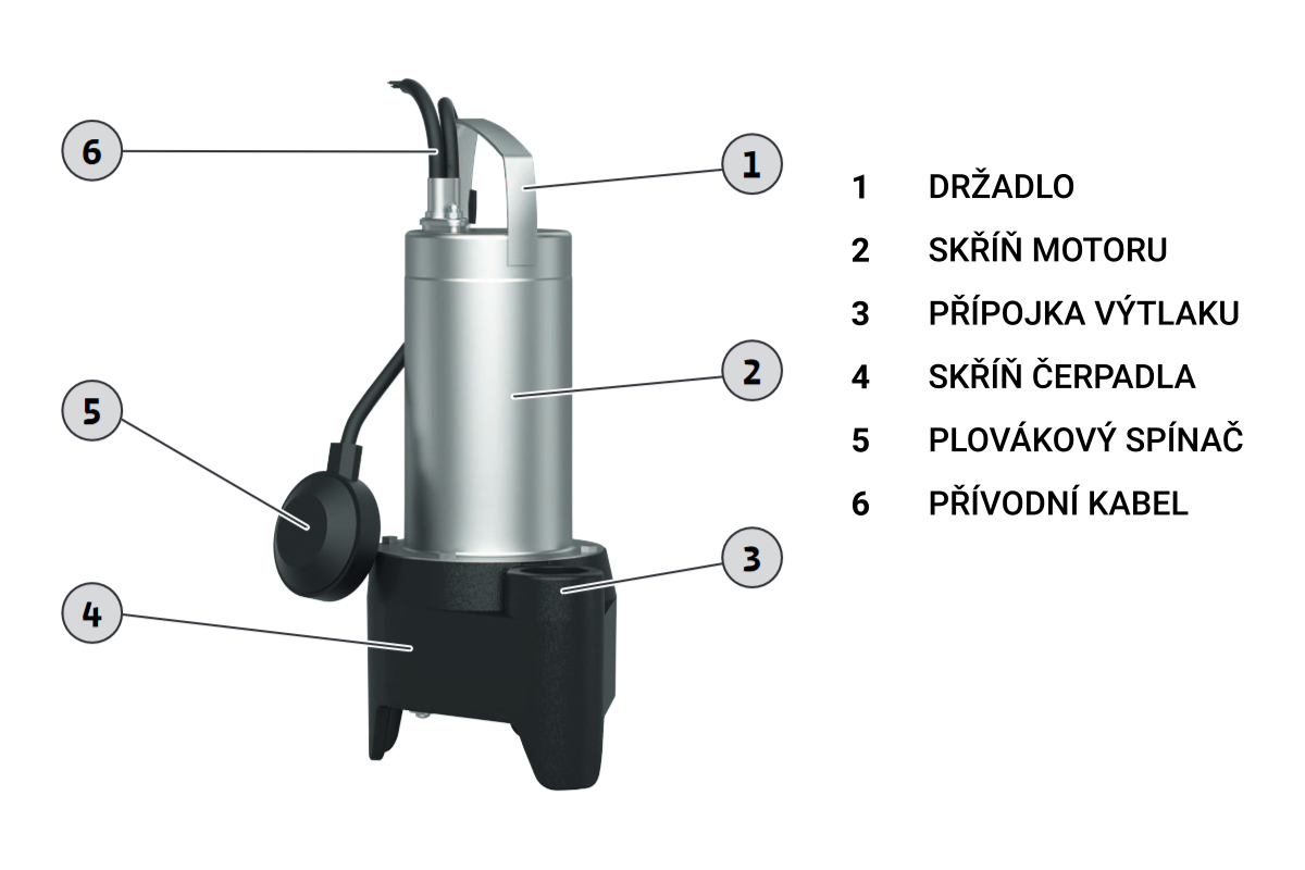 Pompe submersible à boues Rexa MINI3 pour une installation fixe ou mobile en milieu humide. Cette pompe est adaptée pour le drainage des maisons et des terrains, ainsi que pour le pompage des eaux usées et eaux vannes sans contenu fécal. Sa conception compacte permet une installation même dans des tranchées de drainage étroites. Le corps du moteur est en acier inoxydable, tandis que le corps de la pompe est en fonte grise et la roue en matériau composite. Le moteur est refroidi par la surface et la chaleur résiduelle est dissipée dans le milieu environnant. En cas de surchauffe, le moteur s'éteint automatiquement, puis redémarre après refroidissement. Entre le moteur et l'hydraulique se trouve une chambre d'étanchéité remplie d'huile blanche. Du côté du fluide, l'étanchéité est assurée par une garniture mécanique, et du côté du moteur par un joint d'arbre.