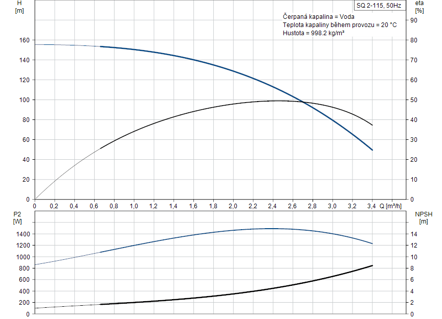 Pompe immergée Grundfos SQ 2-115 pour puits étroits. Alimentation 230 V, hauteur de refoulement max. 150 m, débit max. 3,4 m3/h. Plus d'informations