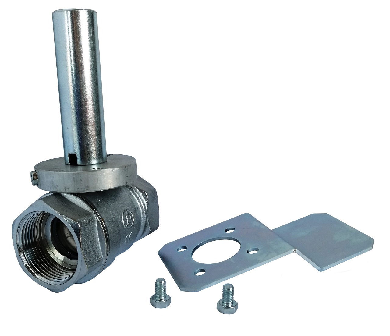 Robinet à bille bivoie fileté en laiton chromé avec levier manuel. La robinetterie est conçue pour réguler et fermer le débit du fluide. Convient également pour des chutes de pression élevées et des températures.