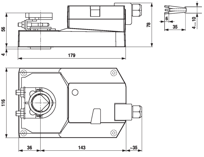 Montage direct simple sur l'arbre du volet avec une étrier universel, sécurisé contre la surrotation avec un fusible fourni. Réglage de la position de travail à l'aide de butées mécaniques. Réglage manuel possible grâce à un bouton à retour automatique (désengagement de la transmission pendant la pression du bouton ou reste en position verrouillée). Haute sécurité de fonctionnement. Le moteur est protégé contre la surcharge, ne nécessite pas de fin de course et reste automatiquement en butée.