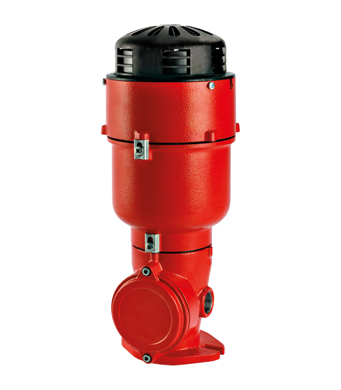 Le corps de la sirène est fabriqué en alliage d'aluminium sans cuivre et recouvert d'une peinture polyester rouge (RAL 3020). Grâce à sa protection IP66, l'appareil est résistant à la poussière et à l'eau. L'installation se fait sur une base plane à l'aide d'un kit de montage standard.