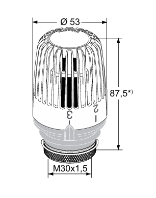 Tête thermostatique pour régulation du chauffage ambiant à monter sur des radiateurs, convecteurs et autres objets de chauffage. Elle régule précisément la température de la pièce en comparant la valeur mesurée à la valeur réglée. La température ambiante est mesurée à l'aide d'un capteur à liquide intégré. La protection contre le gel est bien entendu présente.