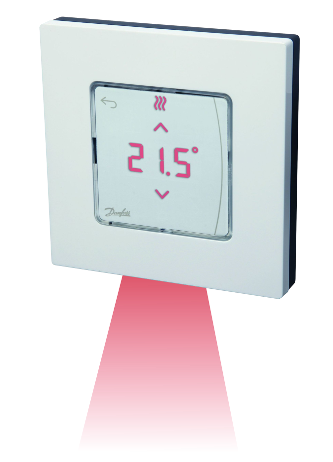 Thermostat d'ambiance sans fil avec écran de contrôle Danfoss Display Wireless Infrared pour montage mural. Idéal pour le chauffage par le sol. Capteur de sol infrarouge. Plus d'informations