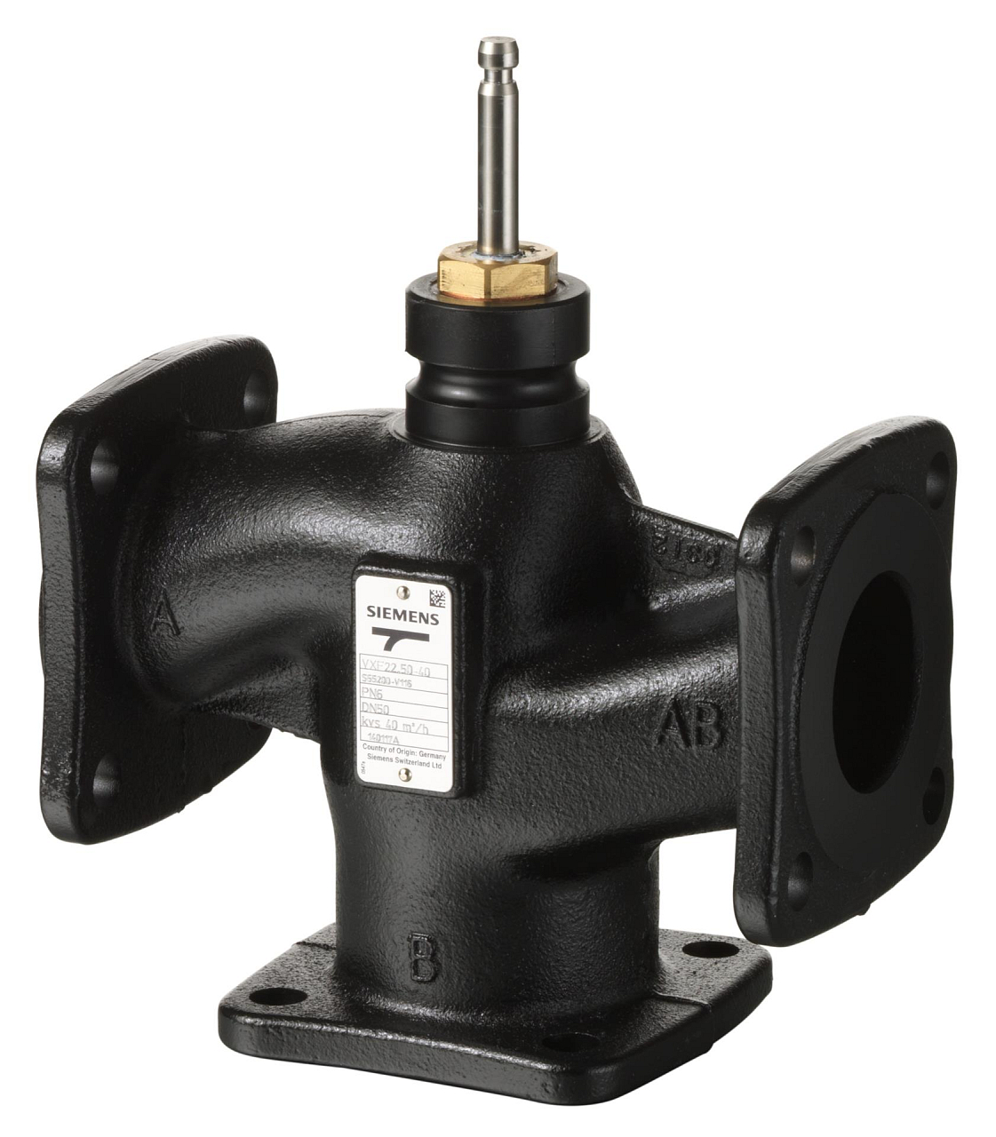 Vanne à bride trois voies Siemens DN 50 avec PN 6, idéale pour la régulation du débit d'eau et de saumure dans des systèmes fermés avec un coefficient de débit élevé kvs de 40 m³/h. Elle permet une régulation fiable dans une plage de température de -10°C à 130°C. Plus d'informations